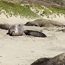 Adult female elephant seals make a number of different sounds. Marine Ecologist Sarah Codde says, “So, you can hear that softer sound she makes is to…